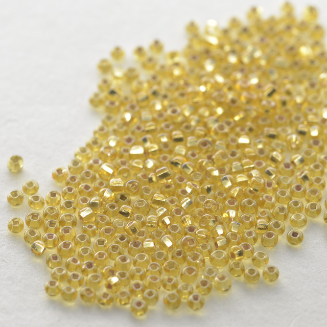 フランスで見つけたヴィンテージ内角ビーズです。 サイズは約1.5mm、約360個前後。 外側は丸いビーズですが銀引きのホールが四角い為、キラキラと華やかに輝きます。 ヴィンテージならではこっくりしたゴールドが美しいビーズです。