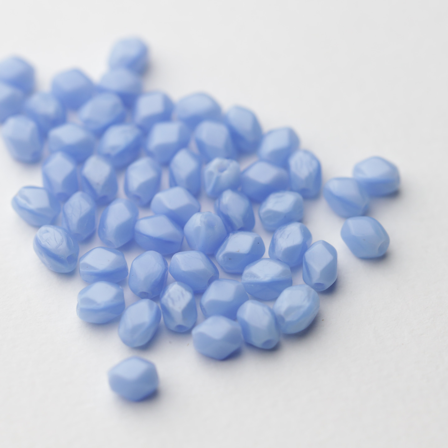 フランスからやってきたヴィンテージガラスビーズ。 こちらは1920〜60年代頃にチェコまたはフランスで作られたようです。 サイズは約6mm×4mmでロザリオやネックレスに最適です。 古いものなので大きさや形の相違や色ムラがあります。 50個セットのお値段です。