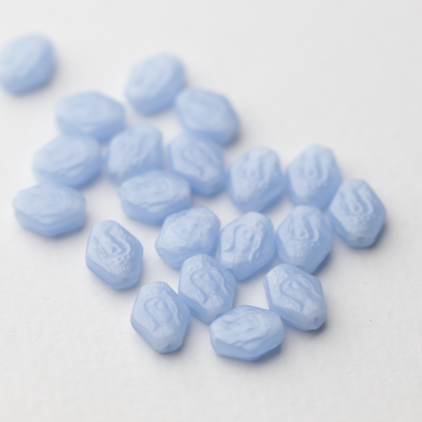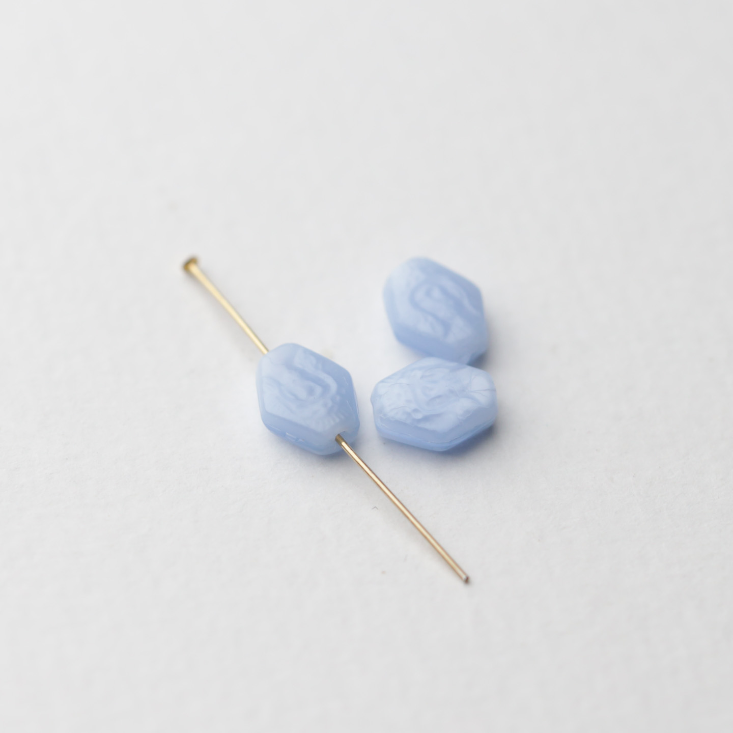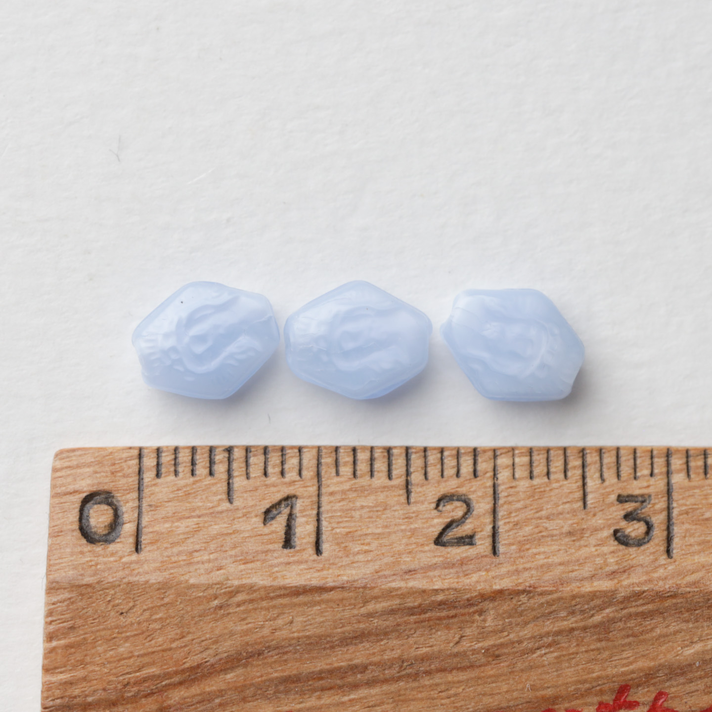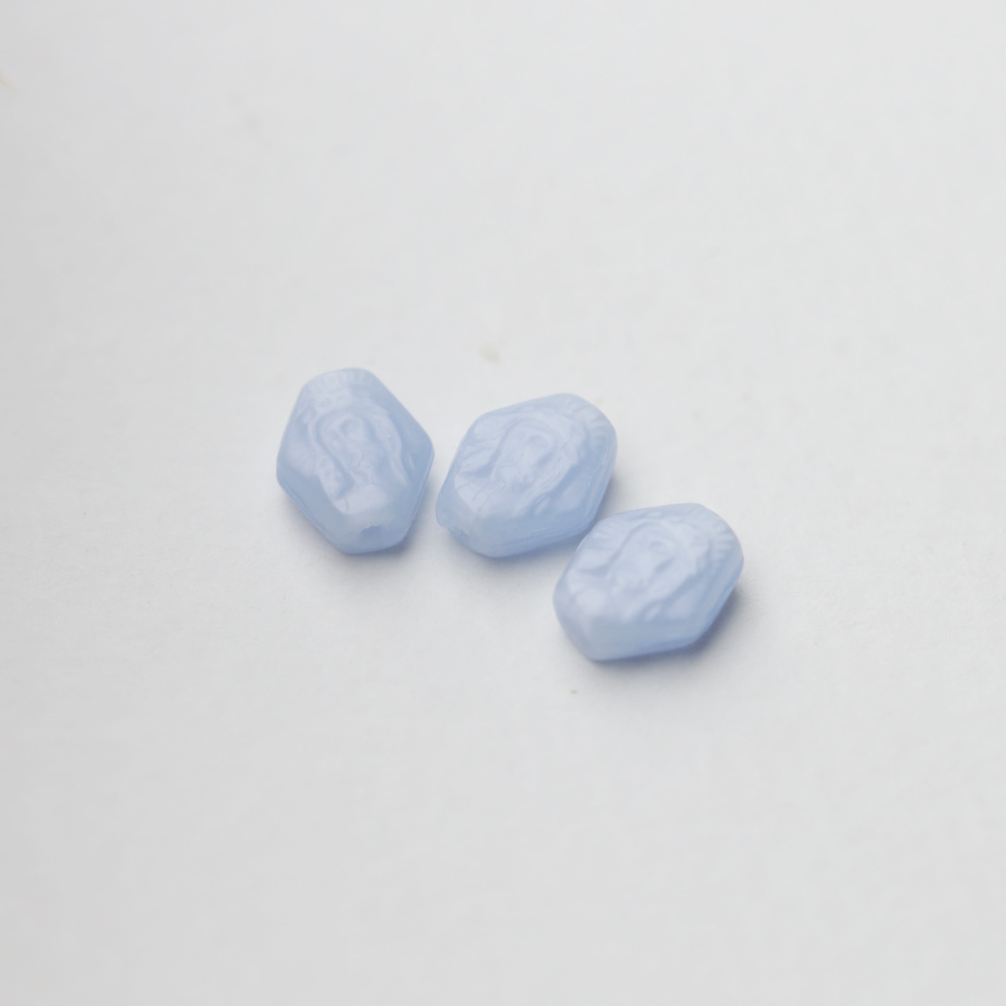 フランスからやってきたヴィンテージガラスビーズ。 こちらは1920〜40年代頃にチェコまたはフランスで作られたようです。 サイズは約8×7mmです。 よく見ると後光の差した聖人像のようです。 ロザリオなど宗教的な目的で使用するために作られたと思われる珍しいお品です。 小さなお守りにいかがでしょう。 古いものなので大きさや形の相違や色ムラがあります。 10個セットのお値段です。