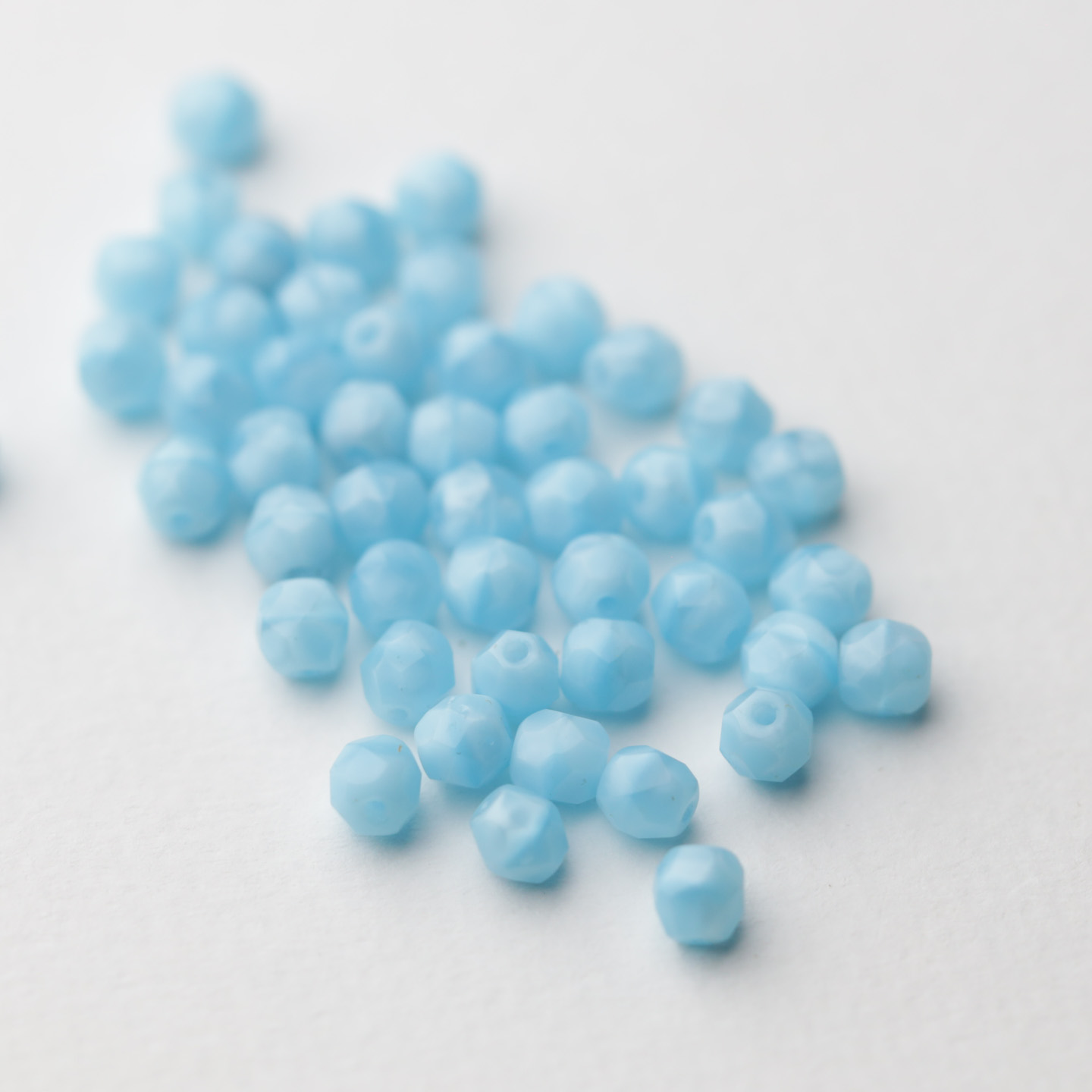 フランスからやってきたヴィンテージガラスビーズ。 こちらは1920〜60年代頃にチェコまたはフランスで作られたようです。 ロザリオやネックレスに最適なサイズです。 古いものなので大きさや形、色味にばらつきがあります。 サイズは約直径4.5mm。 50個セットのお値段です。