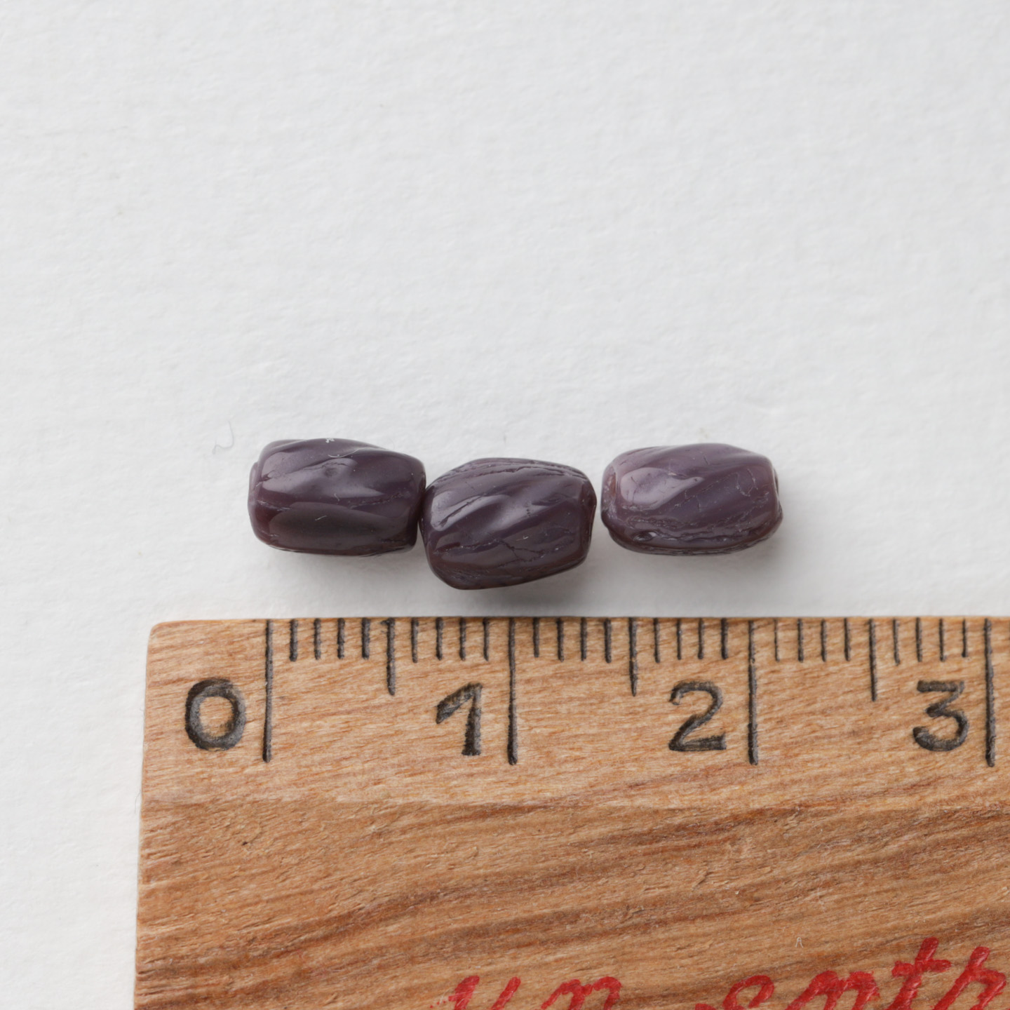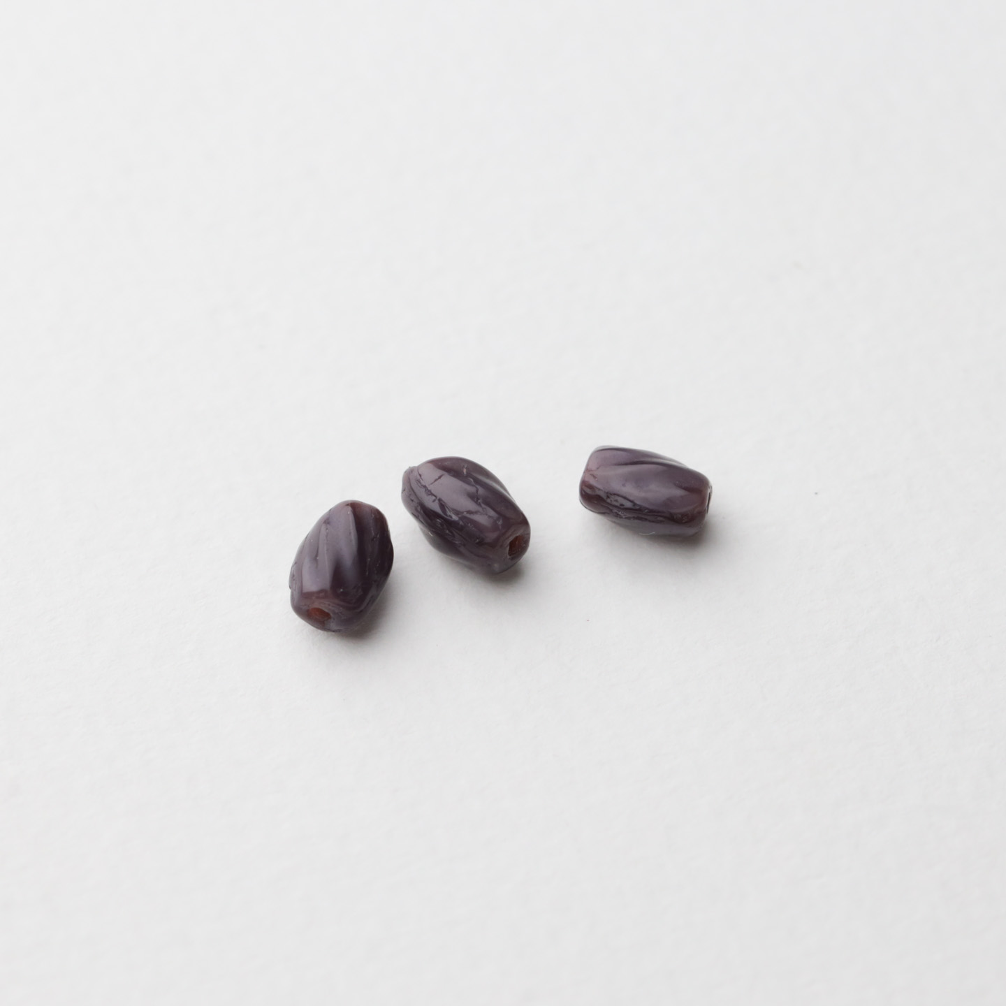 フランスからやってきたヴィンテージガラスビーズ。 こちらは1920〜50年代頃にフランスまたはチェコで作られたようです。 深い紫から濃いグレーのようなシックな色味。 サイズは約7mm×5mmでロザリオやネックレスに最適です。 古いものなので大きさや形の相違や色ムラがあります。 30個セットのお値段です。