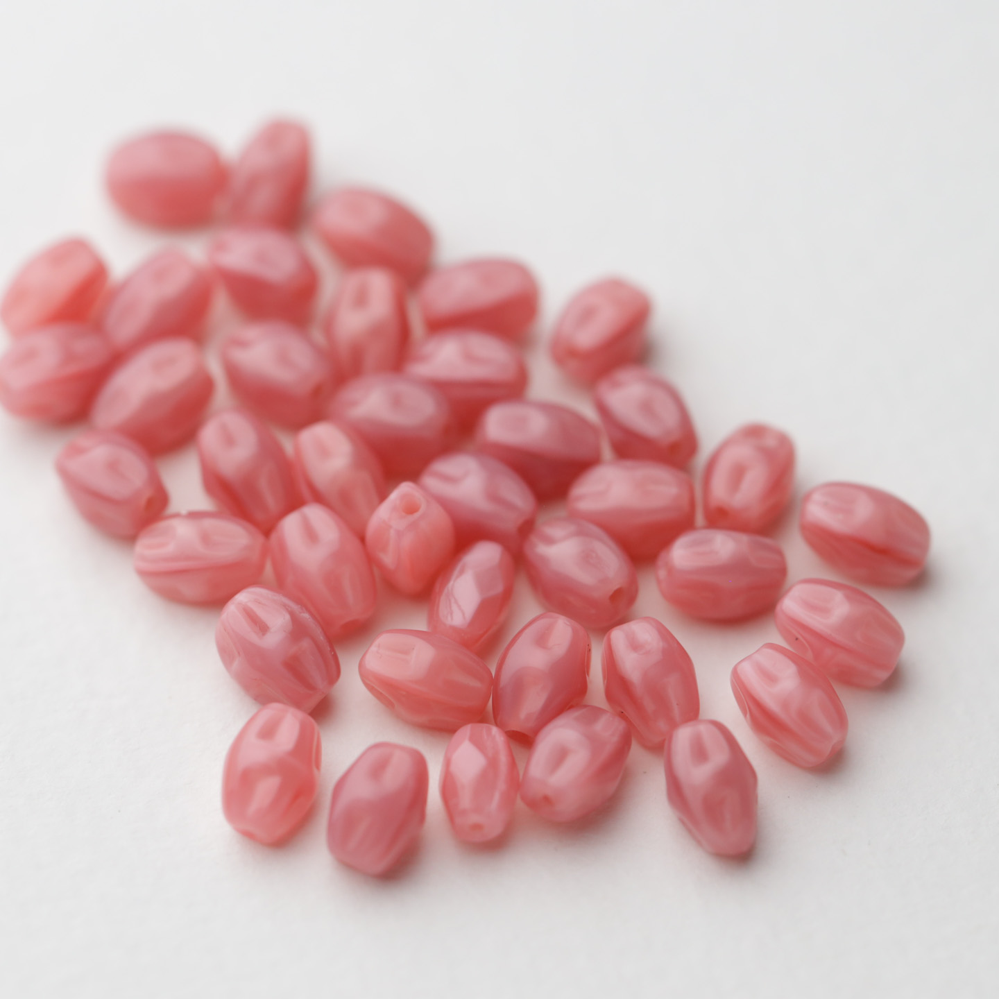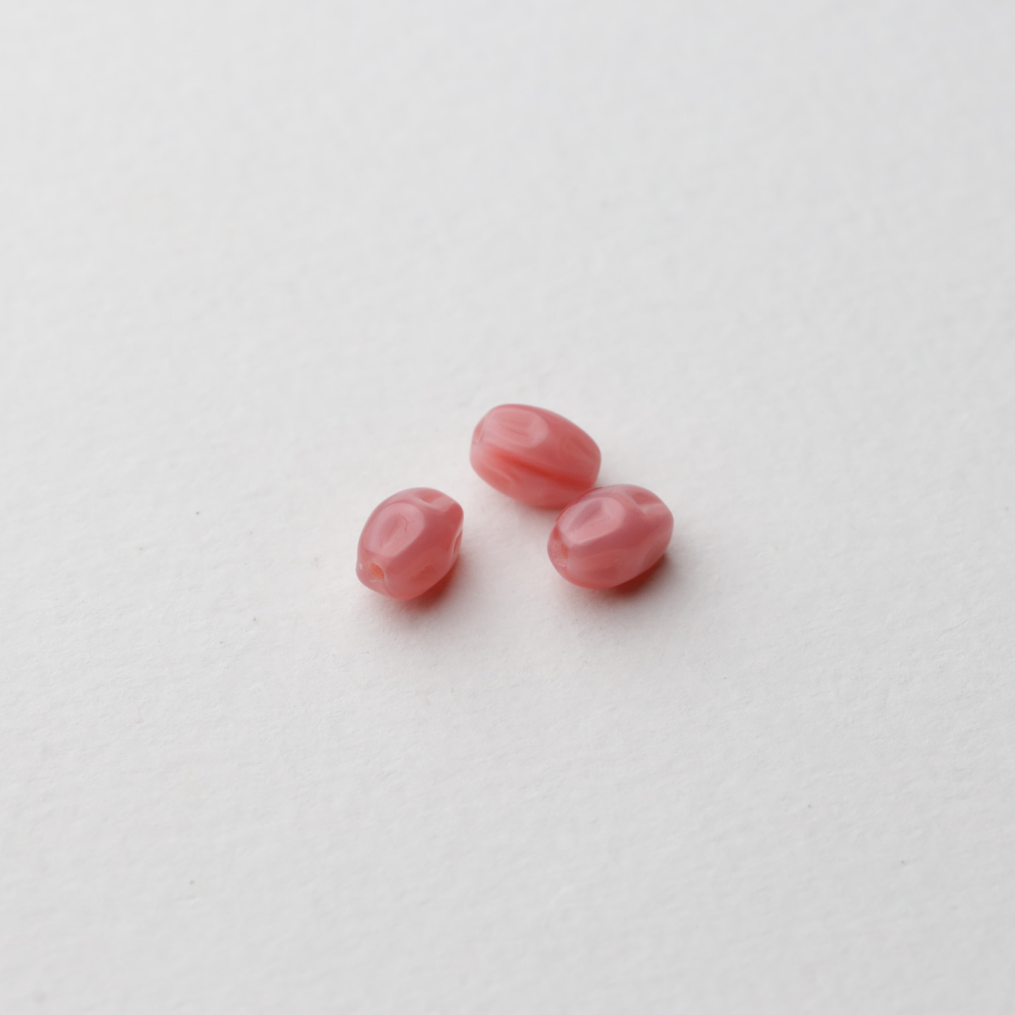 フランスからやってきたヴィンテージガラスビーズ。 こちらは1920〜60年代頃にチェコまたはフランスで作られたようです。 ロザリオやネックレスに最適なサイズです。 サイズは約7mm×5.5mm。 40個セットのお値段です。
