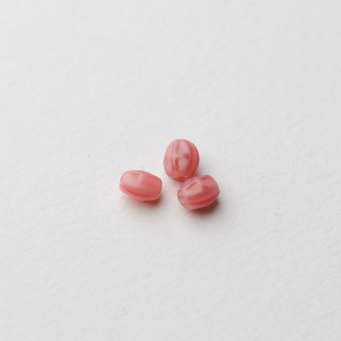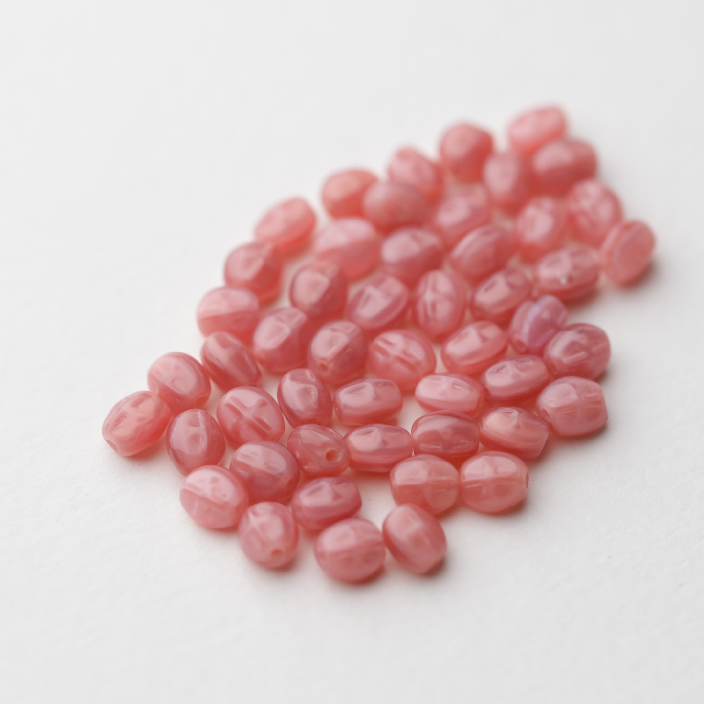 フランスからやってきたヴィンテージガラスビーズ。 こちらは1920〜60年代頃にチェコまたはフランスで作られたようです。 ロザリオやネックレスに最適なサイズです。 サイズは約5mm×4.5mm。 50個セットのお値段です。