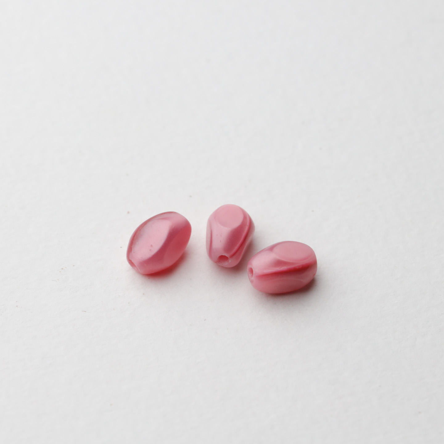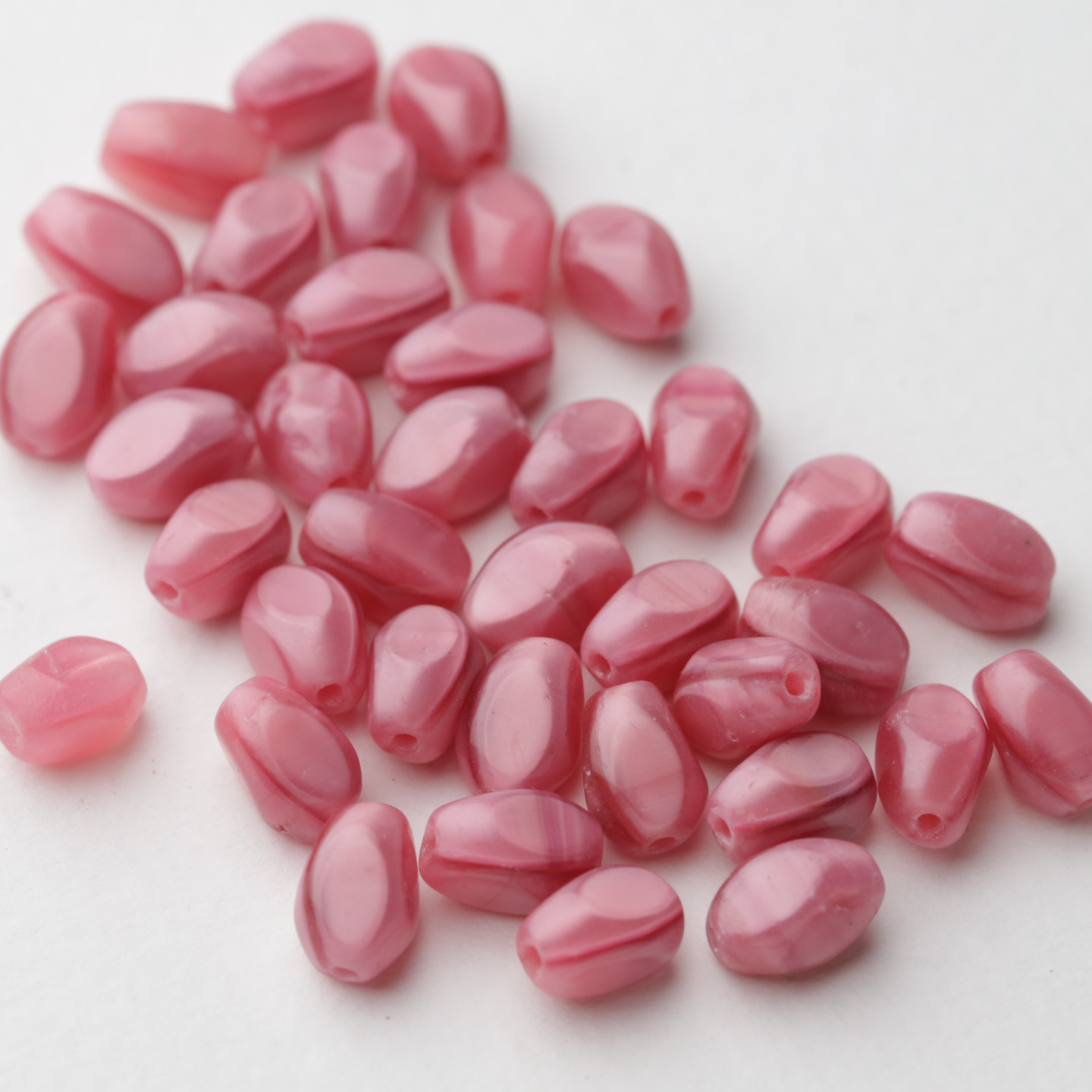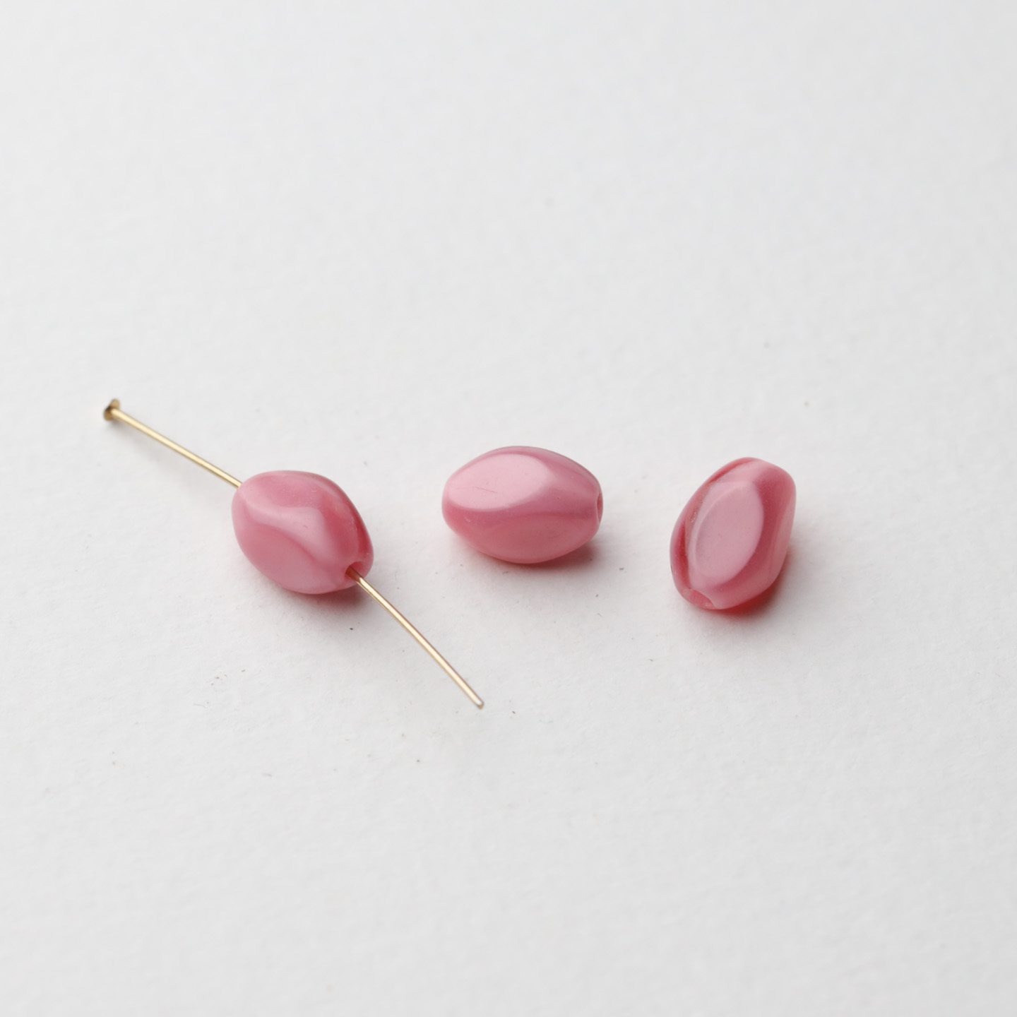 フランスからやってきたヴィンテージガラスビーズ。 こちらは1920〜50年代頃にフランスまたはチェコで作られたようです。 シルクのような艶があります ロザリオやネックレスに最適なサイズです。 サイズは約9mm×6mm。 40個セットのお値段です。