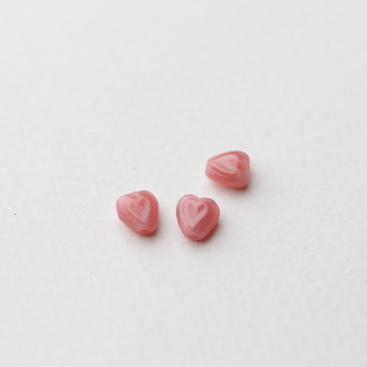 フランスからやってきたヴィンテージガラスビーズ。 こちらは1920〜50年代頃にフランスで作られたようです。 サイズは約5mm×5mmの小さな可愛いハートのビーズです 古いものなので大きさや形の相違や色ムラがあります。 20個セットのお値段です。