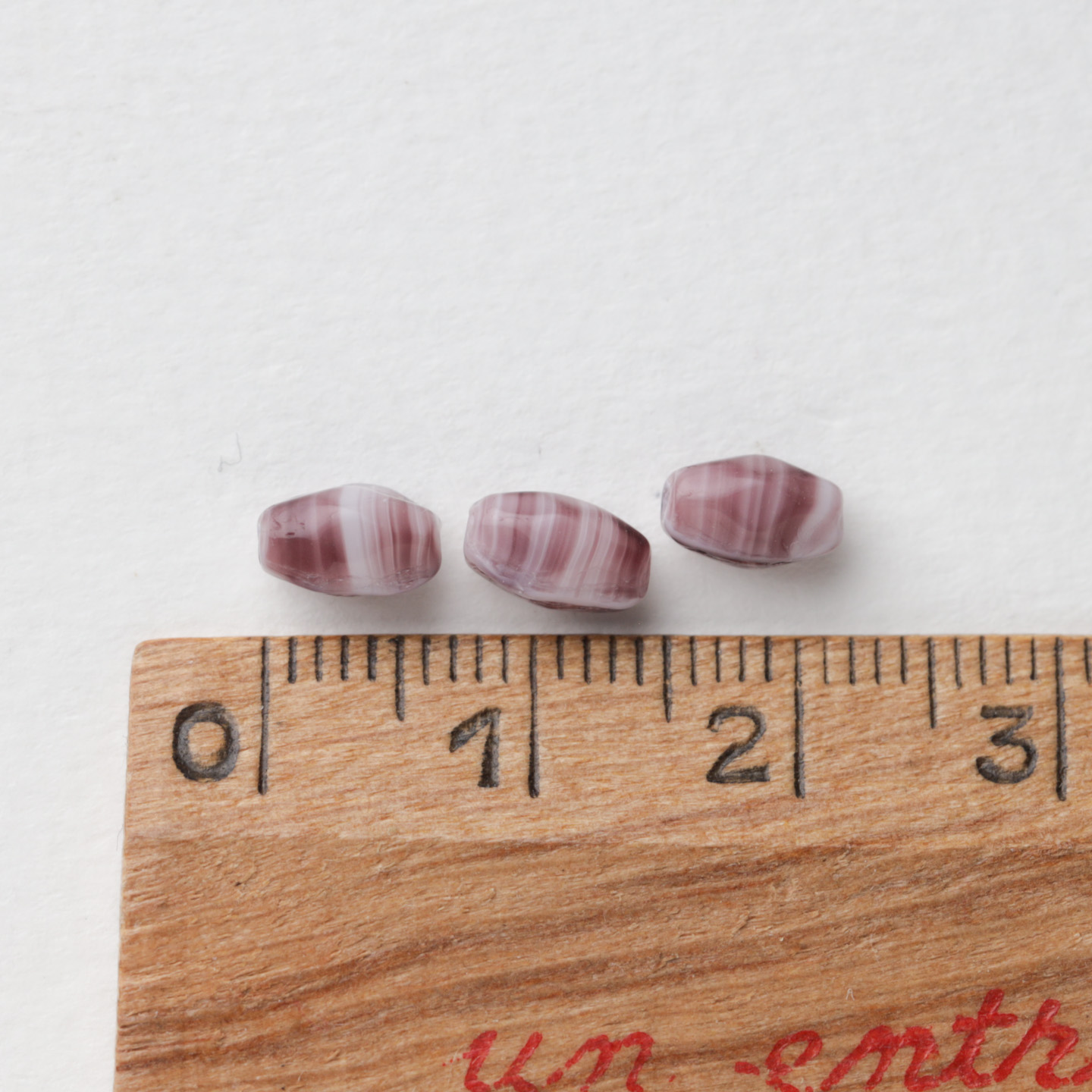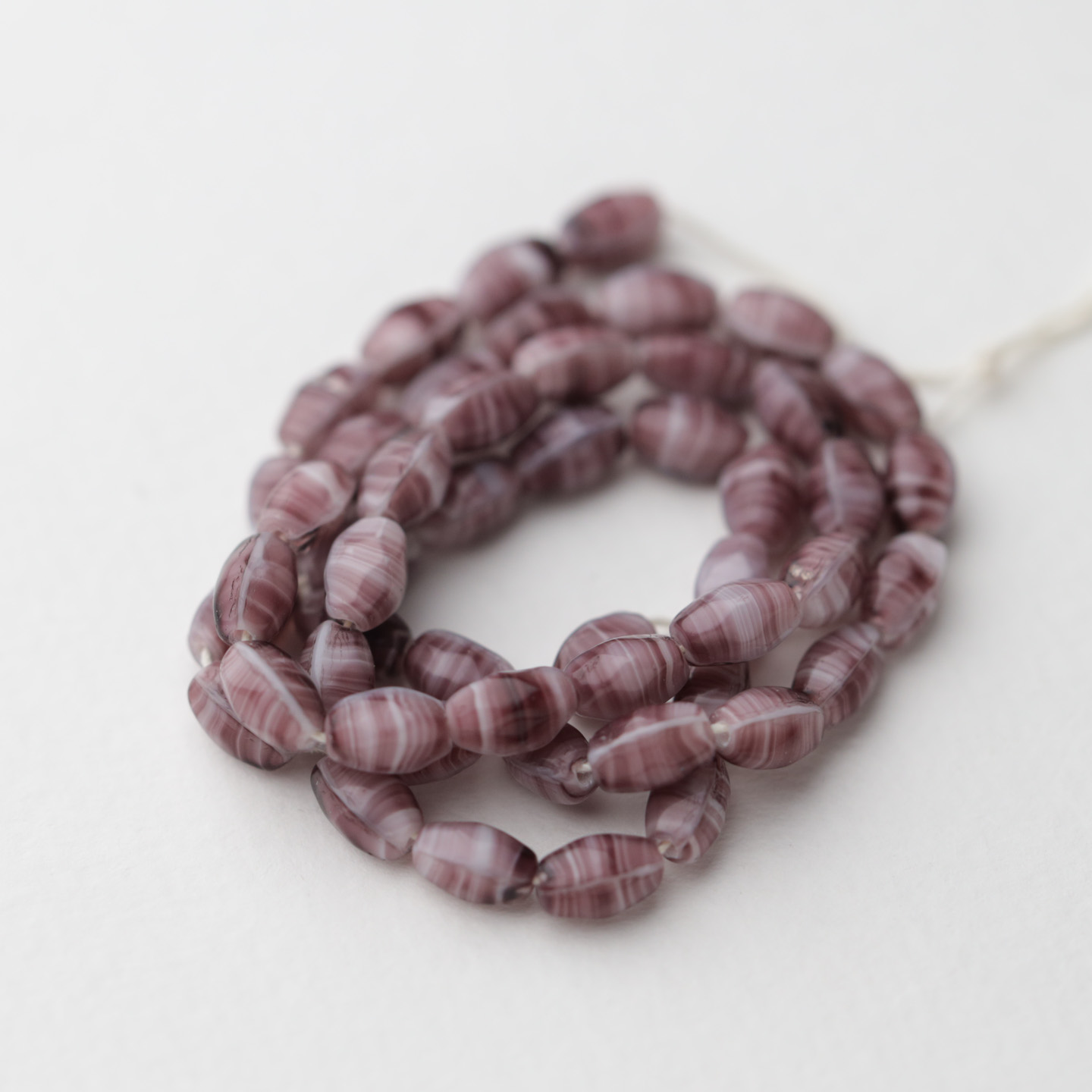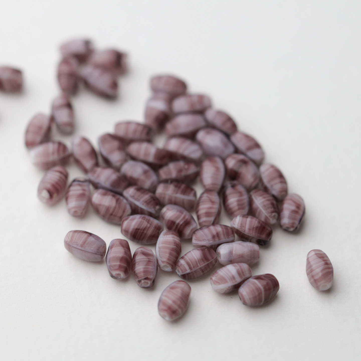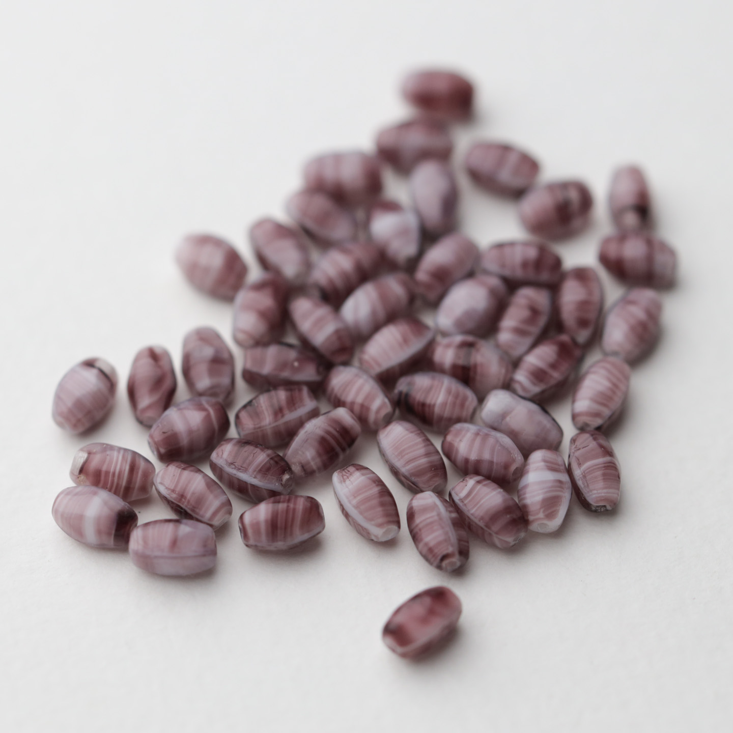 フランスからやってきたヴィンテージガラスビーズ。 こちらは1920〜50年代頃にフランスまたはチェコで作られたようです。 深い紫のマーブル模様でサイズは約7mm×4mmです。 古いものなので大きさや形の相違や色ムラがあります。 50個セットのお値段です。