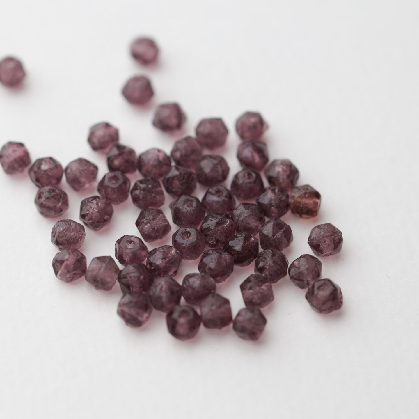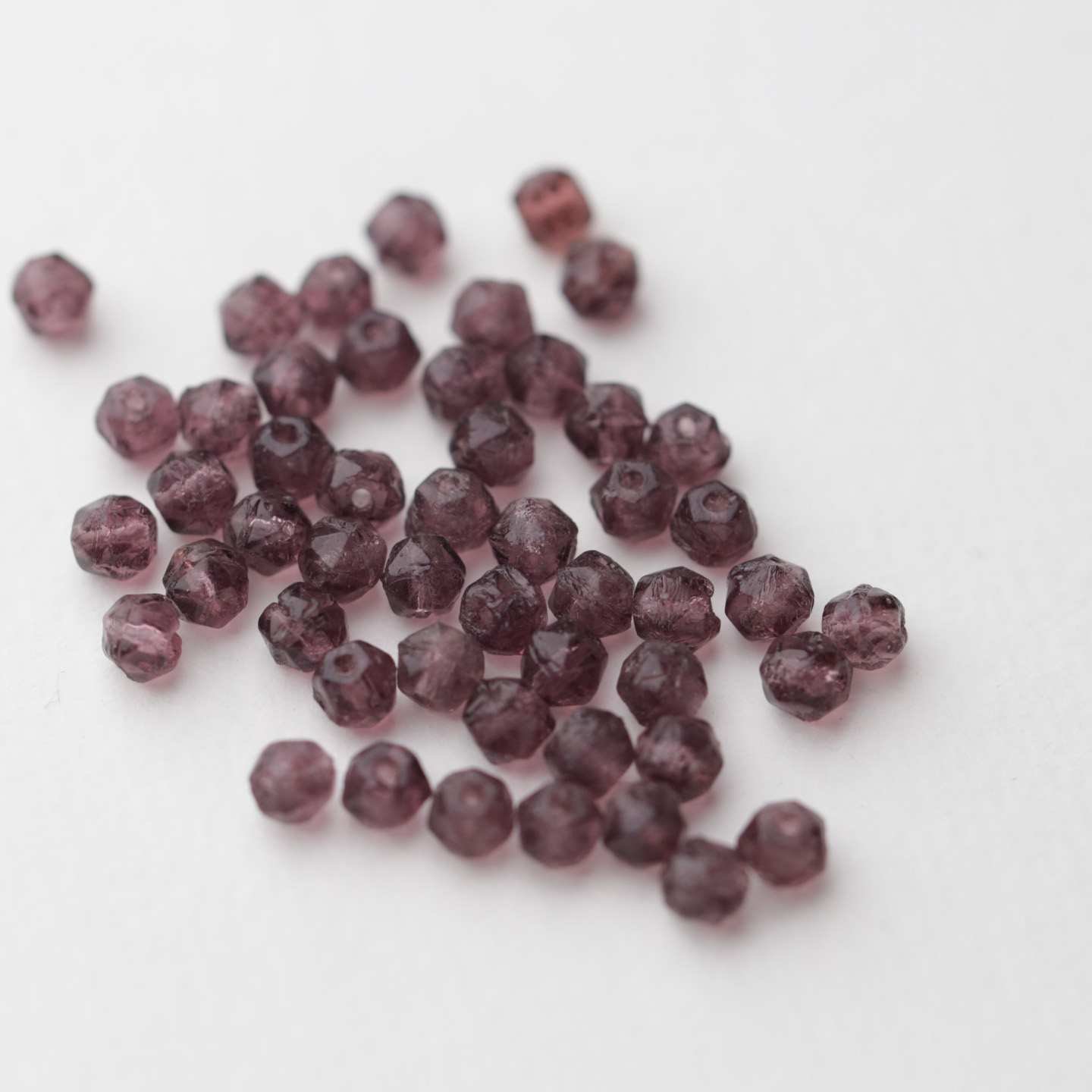 フランスからやってきたヴィンテージガラスビーズ。 こちらは1920〜60年代頃にチェコまたはフランスで作られたようです。 ロザリオやネックレスに最適なサイズです。 古いものなので大きさや形、色味にばらつきがあります。 サイズは約直径4.5mm。 50個セットのお値段です。