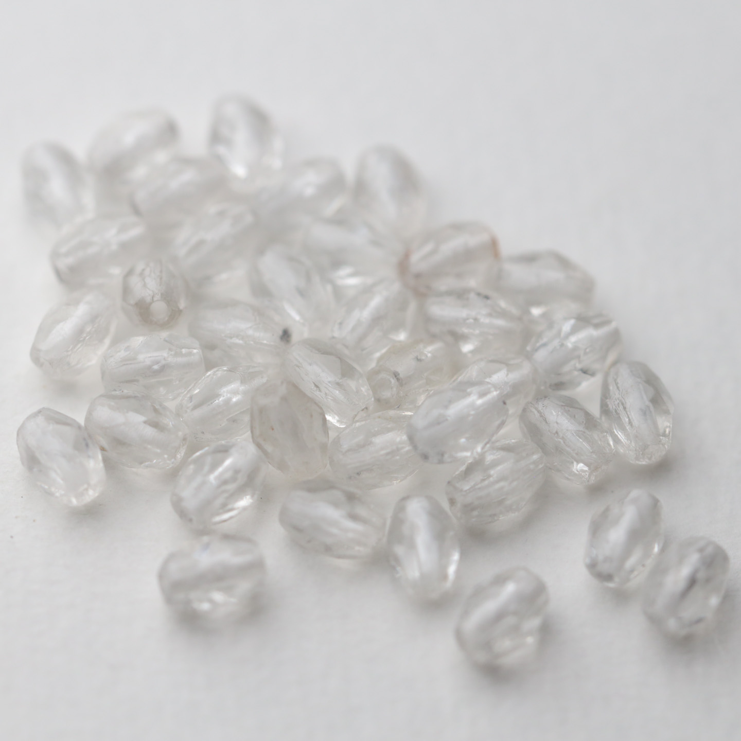 フランスからやってきたヴィンテージガラスビーズ。 こちらは1920〜50年代頃にフランスまたはチェコで作られたようです。 昔のガラスらしい趣があります。 ロザリオやネックレスに最適なサイズです。 サイズは約7×5mmで40個セットのお値段です。