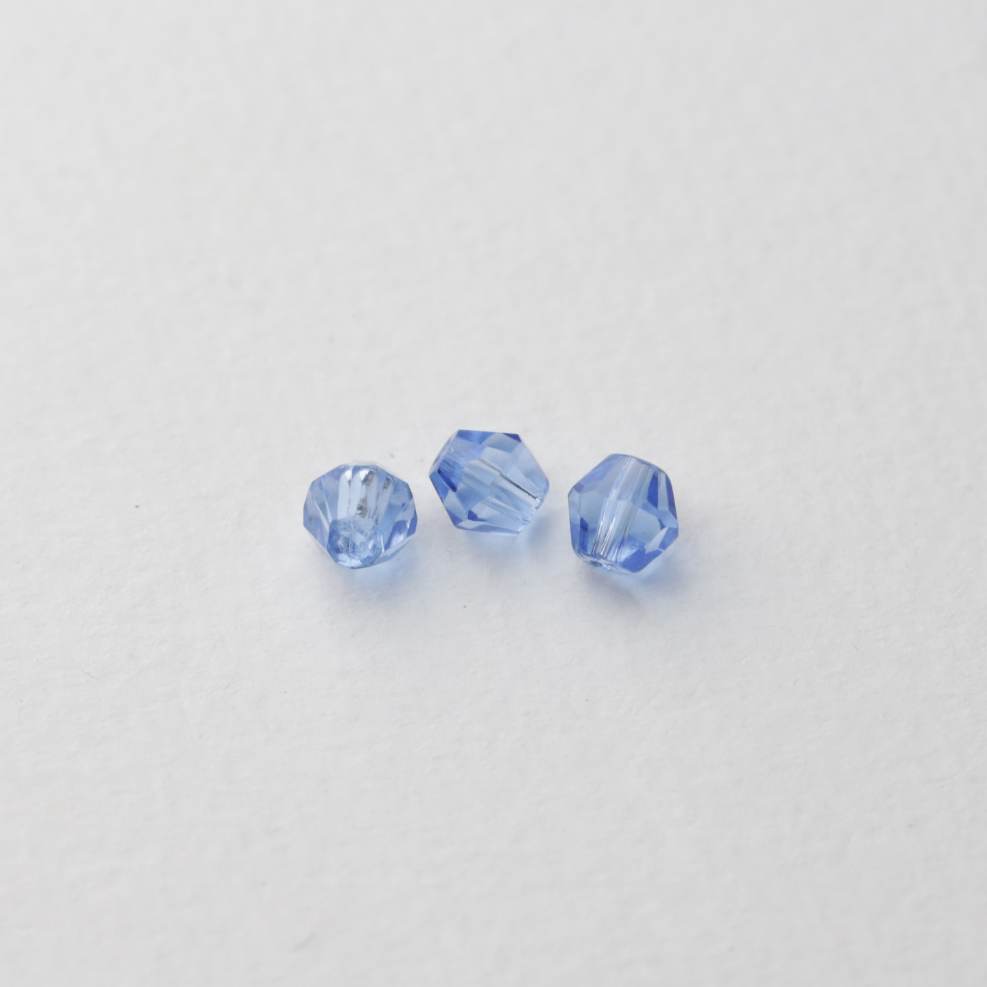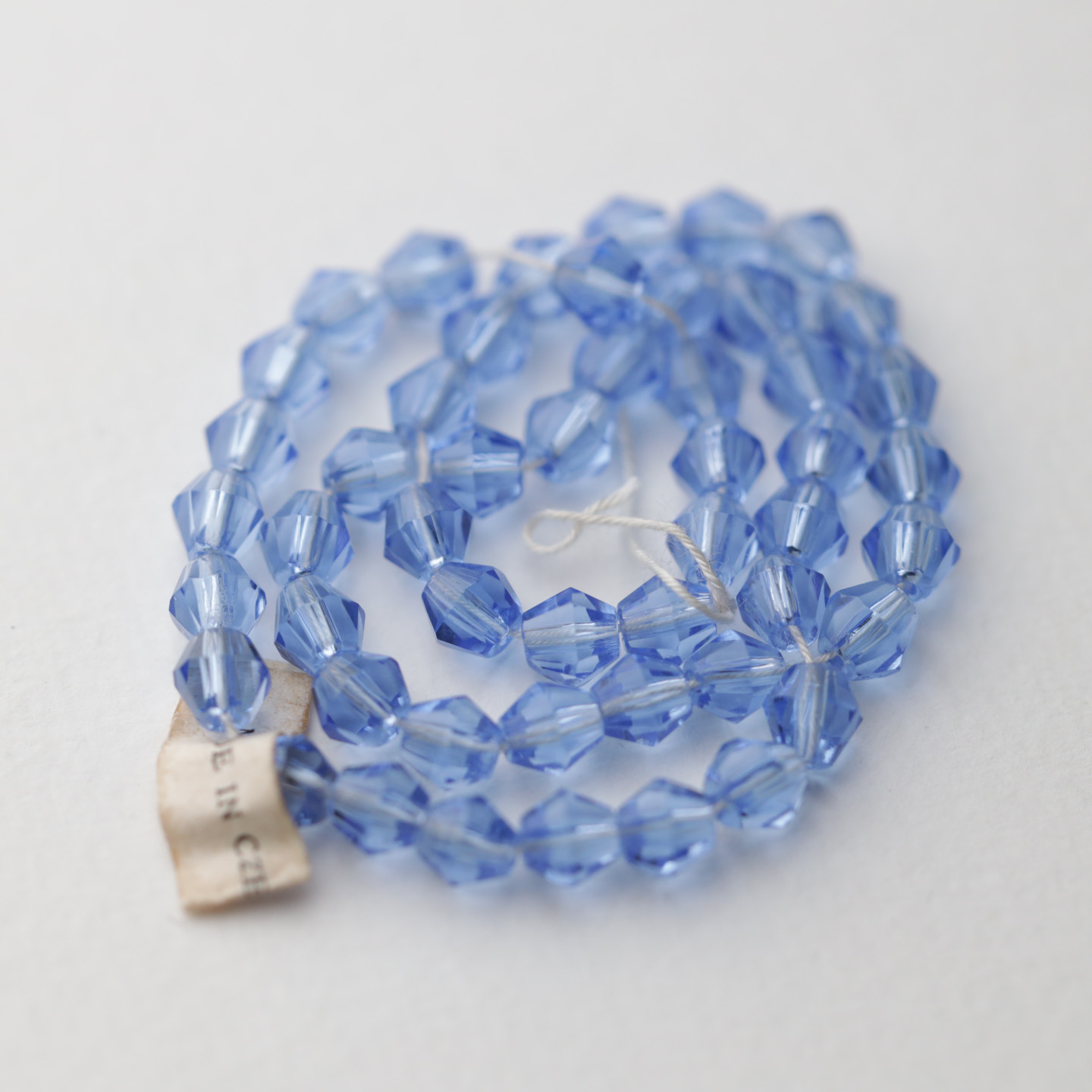 フランスからやってきたヴィンテージガラスビーズ。 こちらは1920〜50年代頃にチェコで作られたようです。 ソロバン型でややカットがゆるく昔のガラスらしい趣があります。 サイズは約5mmで50個セットのお値段です。