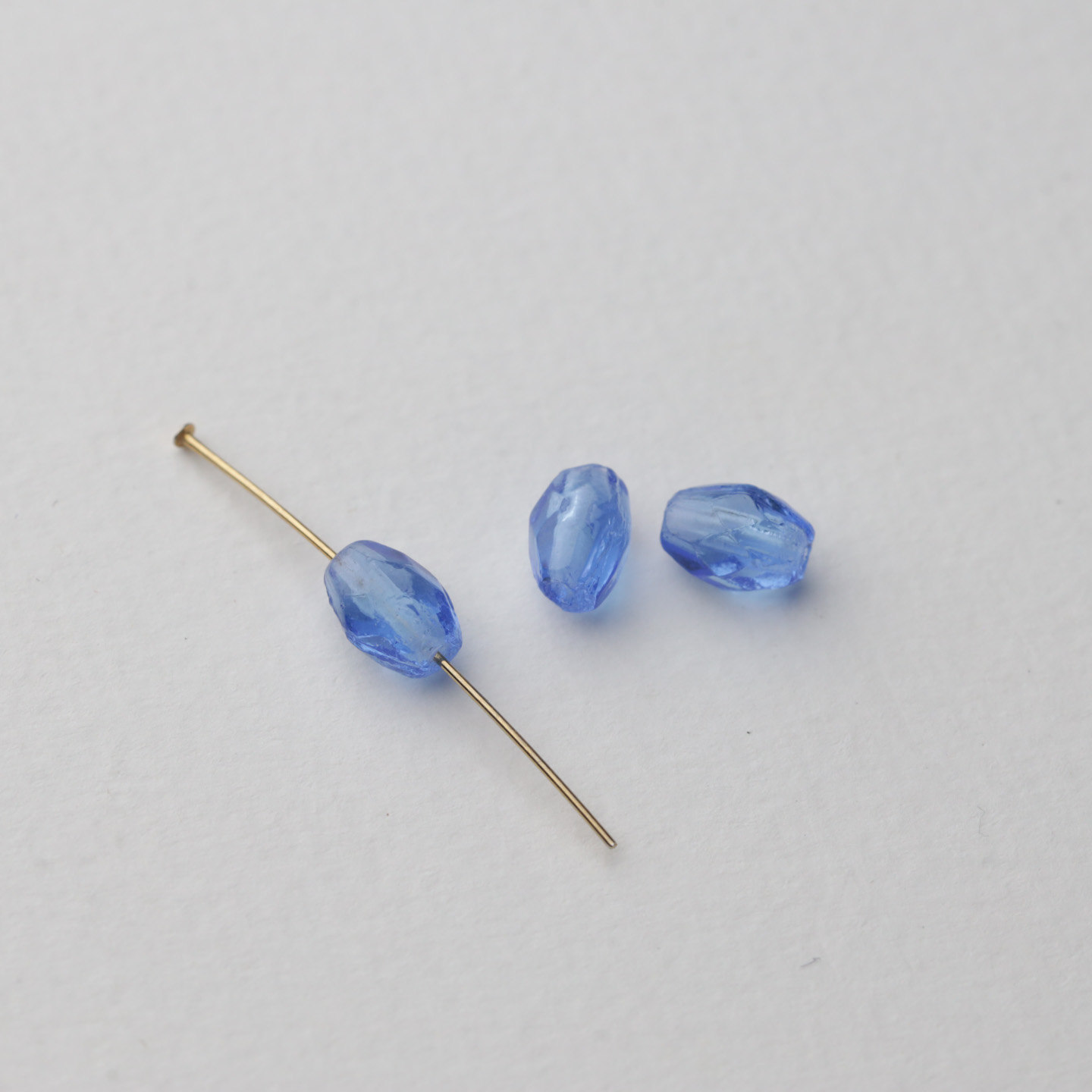 フランスからやってきたヴィンテージガラスビーズ。 こちらは1920〜50年代頃にフランスまたはチェコで作られたようです。 昔のガラスらしい趣があります。 ロザリオやネックレスに最適なサイズです。 サイズは約7×5mmで40個セットのお値段です。