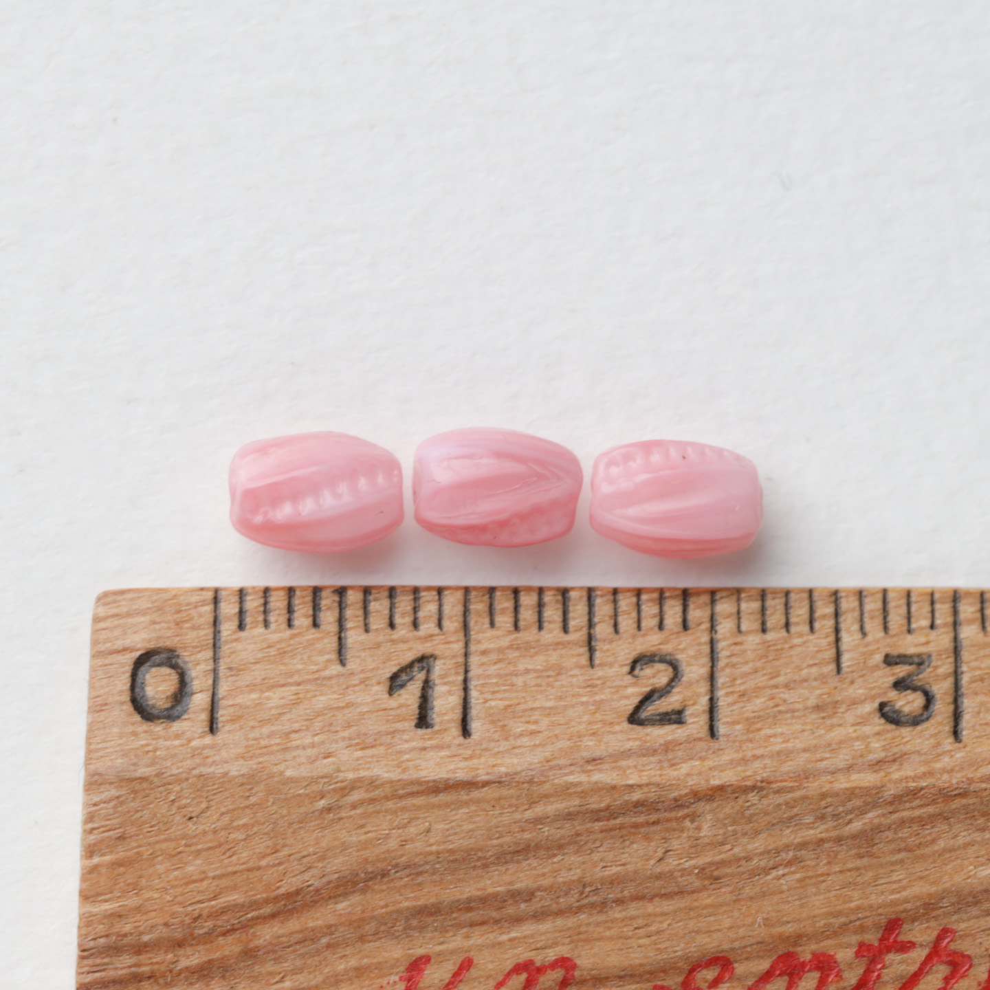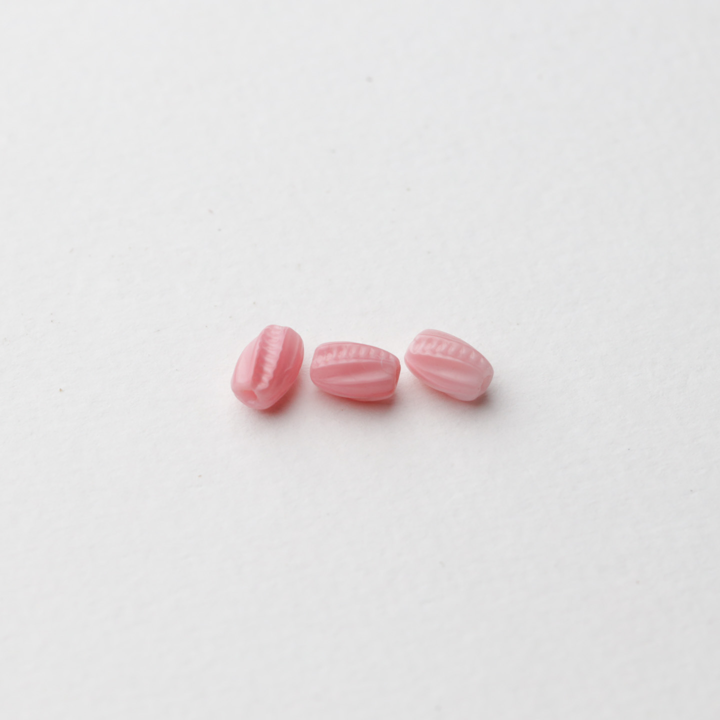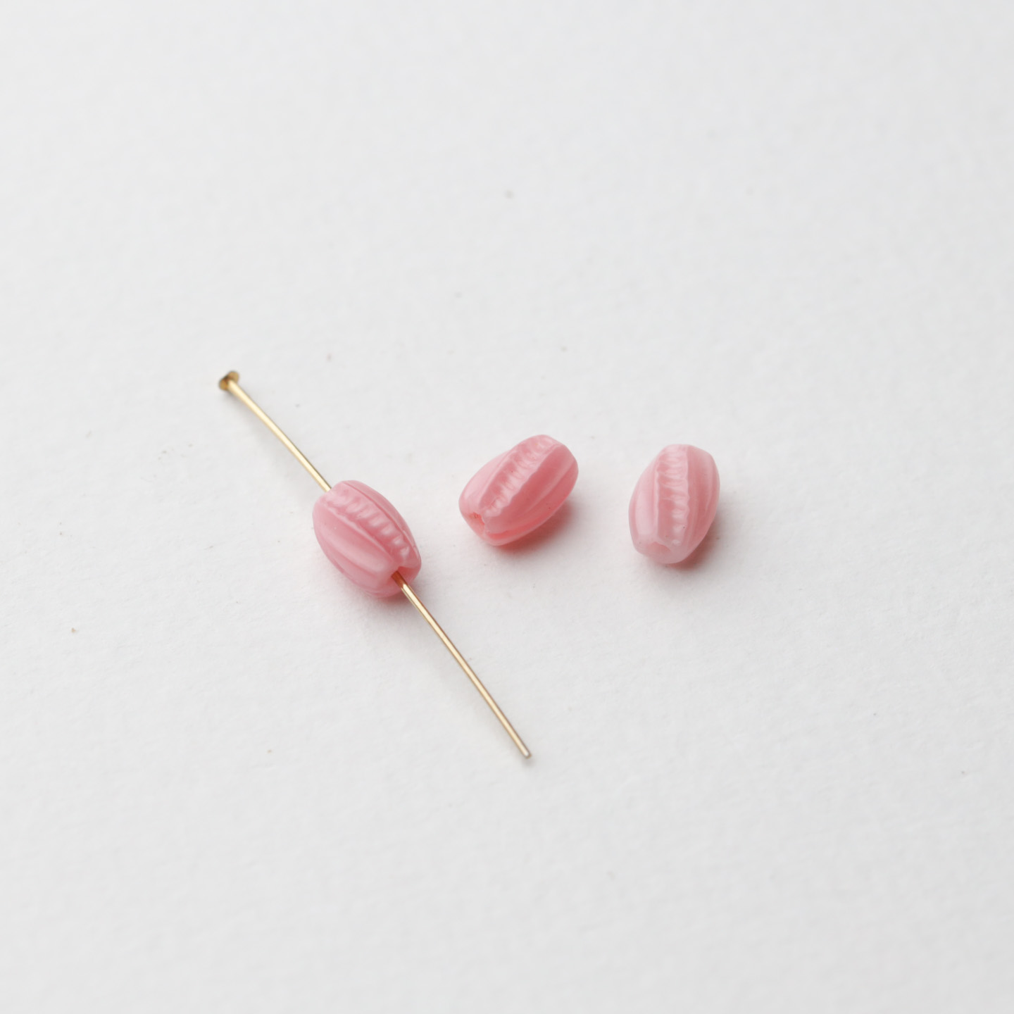 フランスからやってきたヴィンテージガラスビーズ こちらは1920〜50年代頃にフランスまたはチェコで作られたようです 薔薇のつぼみのような繊細なライン模様入り サイズは約7mm×5mmでロザリオやネックレスに最適です 古いものなので大きさや形の相違や色ムラがあります。 20個セットのお値段です